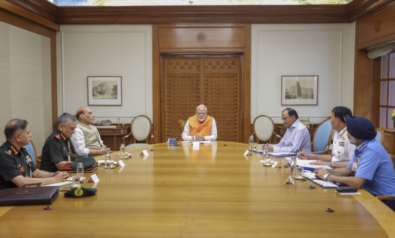 मंगलवार को हुई एक उच्च-स्तरीय बैठक में प्रधानमंत्री नरेंद्र मोदी ने सशस्त्र बलों को आतंकवाद के खिलाफ कार्रवाई के लिए पूर्ण स्वतंत्रता देने की बात कही। उन्होंने कहा, ‘आतंकवाद को करारा झटका देना हमारा राष्ट्रीय संकल्प है। हमें भारतीय सशस्त्र बलों की पेशेवर क्षमताओं पर पूरा विश्वास है। आतंकवाद के खिलाफ कार्रवाई का तरीका, लक्ष्य और समय सेना तय करे।’ इस बैठक में रक्षा मंत्री राजनाथ सिंह, राष्ट्रीय सुरक्षा सलाहकार अजित डोवल, चीफ ऑफ डिफेंस स्टाफ जनरल अनिल चौहान, थल सेना प्रमुख जनरल उपेंद्र द्विवेदी, वायु सेना प्रमुख एयर चीफ मार्शल एपी सिंह और नौसेना प्रमुख एडमिरल दिनेश त्रिपाठी मौजूद थे।