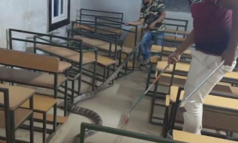 स्कूल के क्लासरूम में घुसा 15 फीट लंबा किंग कोबरा, मचा हड़कंप, पकड़ने में छूटा पसीना