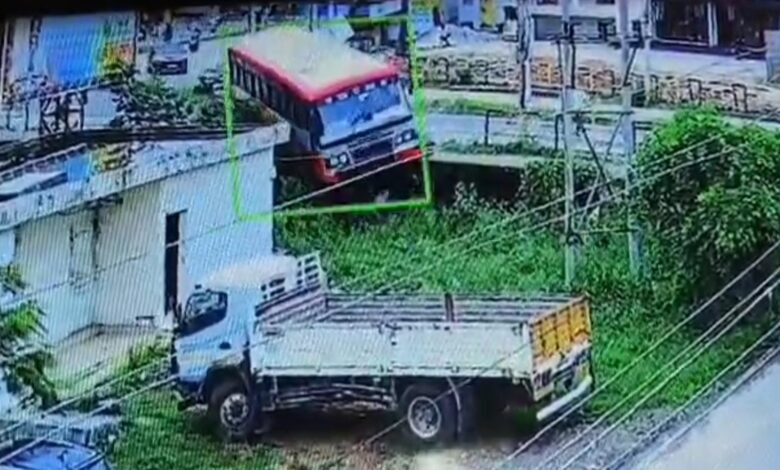 कर्नाटक में बेंगलुरु के पास सोमवार की सुबह एक दिल दहला देने वाला हादसा हुआ जिसकी CCTV फुटेज आज सामने आई है। राज्य सड़क परिवहन निगम (KSRTC)  की एक बेकाबू बस की चपेट में आने से एक पुलिस अधिकारी की मौत हो गई जबकि 12 लोग घायल हुए हैं। ये हादसा रामनगर जिले के कगलीपुरा इलाके में हुआ। बेकाबू बस ने बाइक पर आ रहे सब इंस्पेक्टर को कुचल दिया, जिसके बाद बस एक नाले में गिर गई।