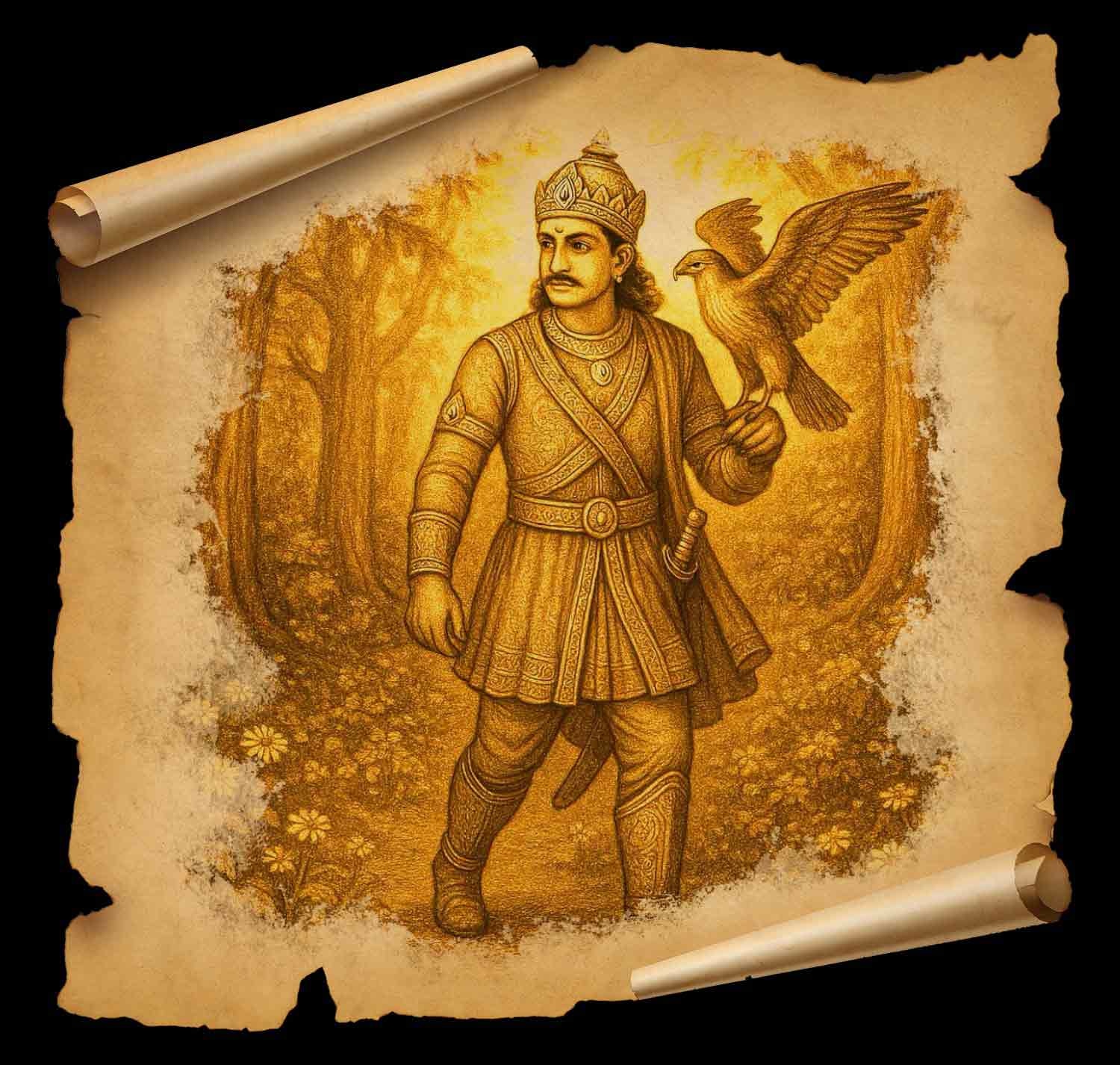 इसी बीच राजा को राज्य में हिंसक पशुओं के उत्पात की सूचना मिली. राजा उनका वध करने के लिए निकल गए. सौभाग्य से वह समय वन और प्रकृति के लिए भी ऋतुकाल (वसंत का समय) ही था. वसंत का समय था, अशोक ,चम्‍पा, माधवीलता, नागकेसर, कनेर, मौलसिरी, दिव्‍यपाटल,चंदन और अर्जुन – ये स्‍वादिष्ट फूलों-फलों से युक्त पवित्र महावृक्ष उस वन की शोभा बढ़ा रहे थे. कोयलों का सुर लुभा रहा था. झरनों-तालों से कल-कल की ध्वनि आ रही थी.