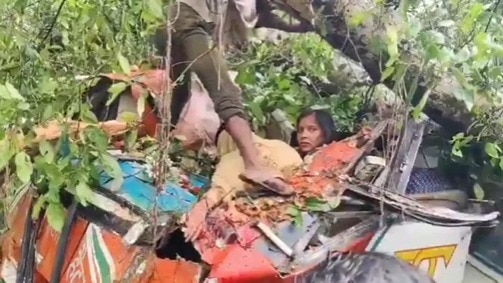 घटना थाना जैदपुर क्षेत्र के हरख ब्लॉक के पास हुई, जहां तेज बारिश के बीच करीब 10:29 बजे सड़क किनारे खड़ा एक विशालकाय पेड़ जड़ से उखड़कर तेज रफ्तार से आ रही बस पर जा गिरा. टक्कर इतनी भीषण थी कि बस का अगला हिस्सा बुरी तरह क्षतिग्रस्त हो गया.