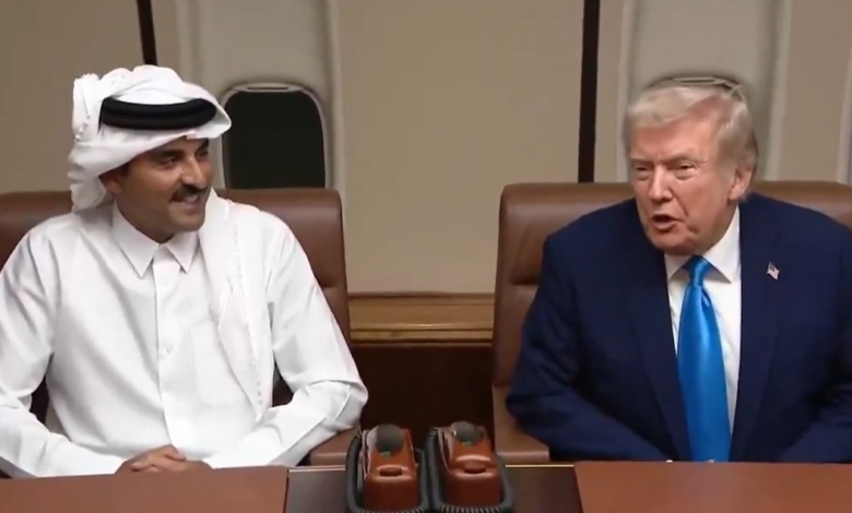 कतर के अमीर शेख तमीम बिन हमद अल थानी ने ट्रंप के स्वागत में मुस्कुराते हुए कहा, “जैसे ही मुझे पता चला कि उनका (ट्रंप का) विमान यहां ईंधन भरने के लिए आ रहा है, मैंने कहा – जब तक मैं जाकर उनसे मिल नहीं लेता, मैं उन्हें उड़ान भरने नहीं दूंगा.”