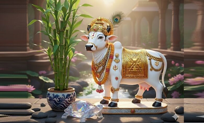 शास्त्रों में कामधेनु गाय को बहुत ही दिव्य और चमत्कारी बताया गया है. ऐसी मान्यताएं हैं कि समुद्र मंथन से निकले 14 रत्नों में से एक कामधेनु गाय भी है. ऐसी भी मान्यता है कि कामधेनु गाय में सभी 33 करोड़ देवी-देवताओं का वास होता है. इसलिए इसे घर की उत्तर दिशा में रखना बहुत शुभ माना जाता है. यदि आपका खुद का कारोबार या दुकान है तो उसे पैसों की गल्ले के पास रखना भी बहुत शुभ माना जाता है.
